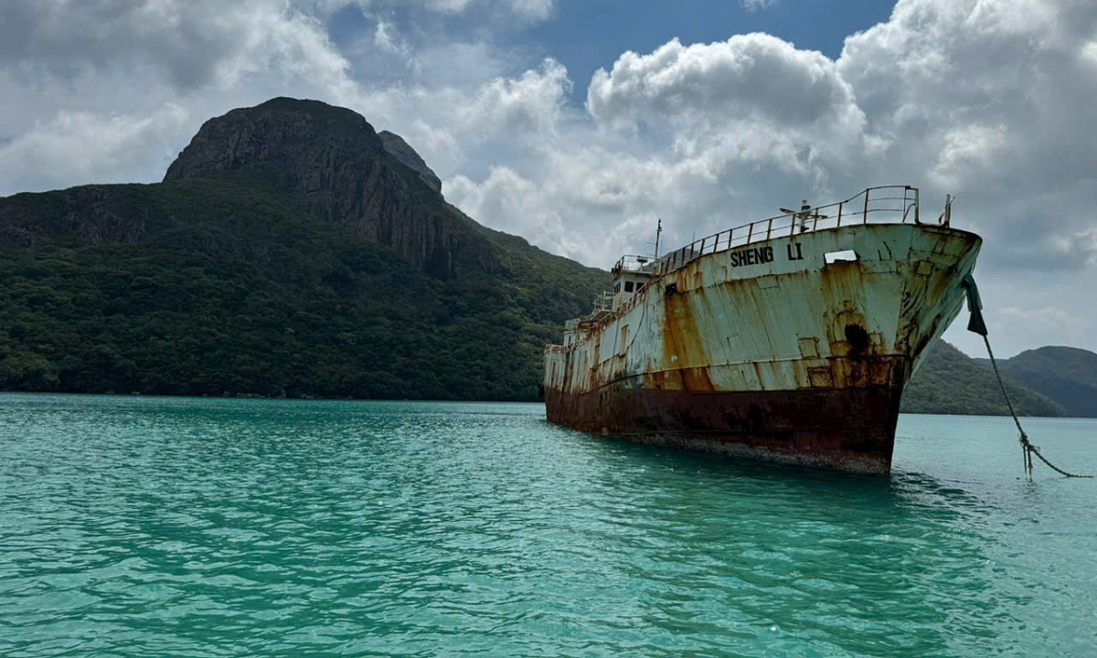 Tàu hàng Sheng Li bỏ hoang hơn 4 năm ở vịnh Côn Sơn hiện han gỉ nặng. Ảnh: Ngô Tuấn Tú